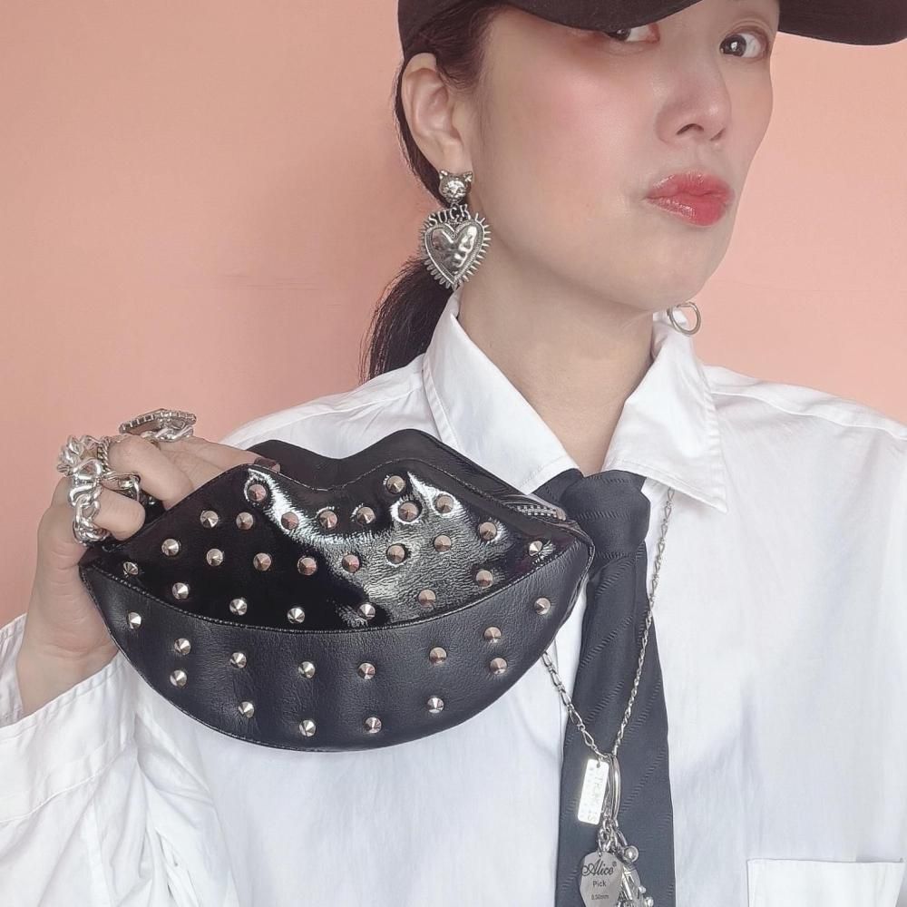 輝くメタリックキャット&ベア ブラックダイヤアイズでお洒落しています。揺れるハートコンチョ ビジューリングにはスタッズがエッジを効かせています。