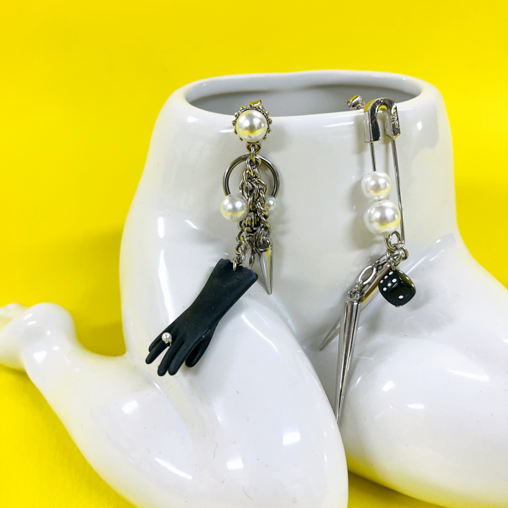 シック&クラシカル感をMIXしたピアス guriguriらしいユーモアも込めて