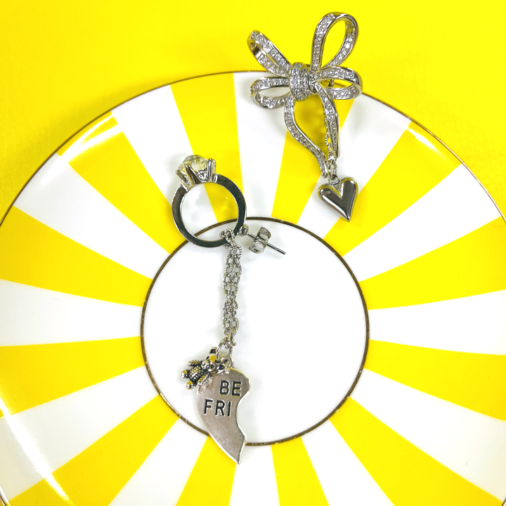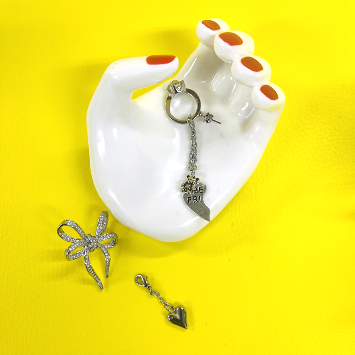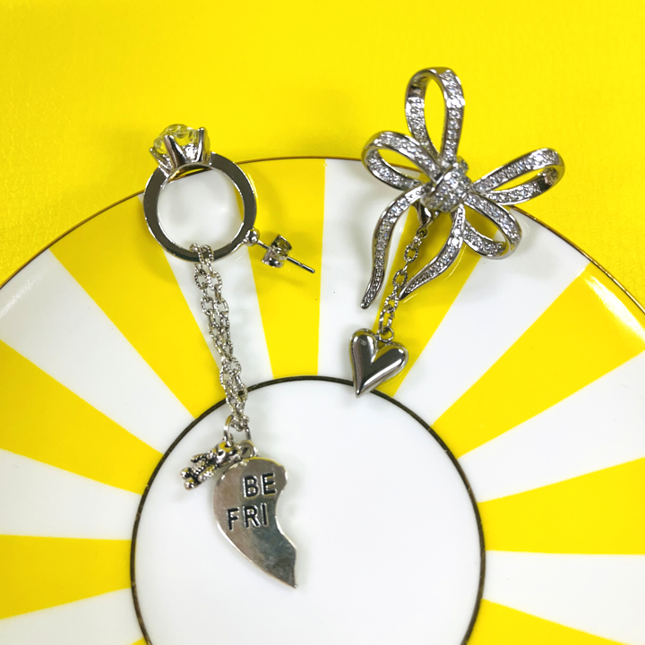 クラシカルなリボンビジューには小さいハートが揺れています。