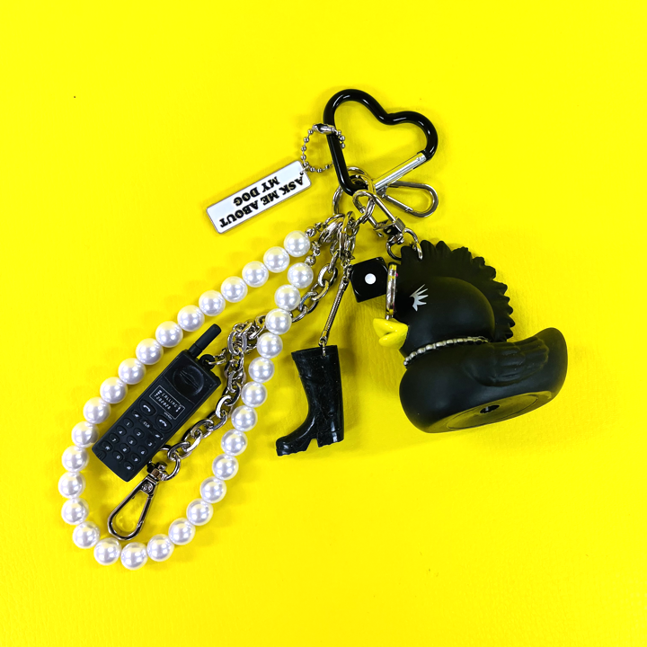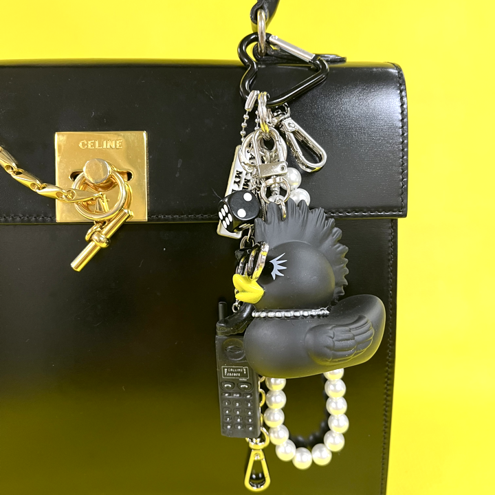 お気に入りのおもちゃにユーモア溢れるスパイス&ビジューを散りばめたチャームです