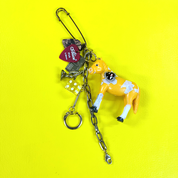 お気に入りのおもちゃにユーモア溢れるスパイス&ビジューを散りばめたチャームです