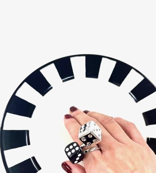 存在感のあるサイコロをモチーフとしたリング。お手元に遊び心を