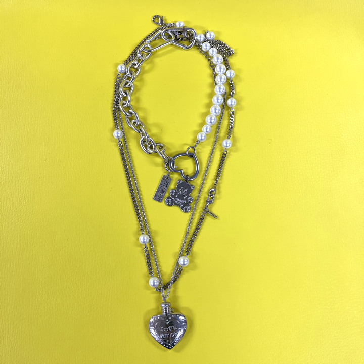 SILVER&PEARL×BEAR NECKLACE 3SET