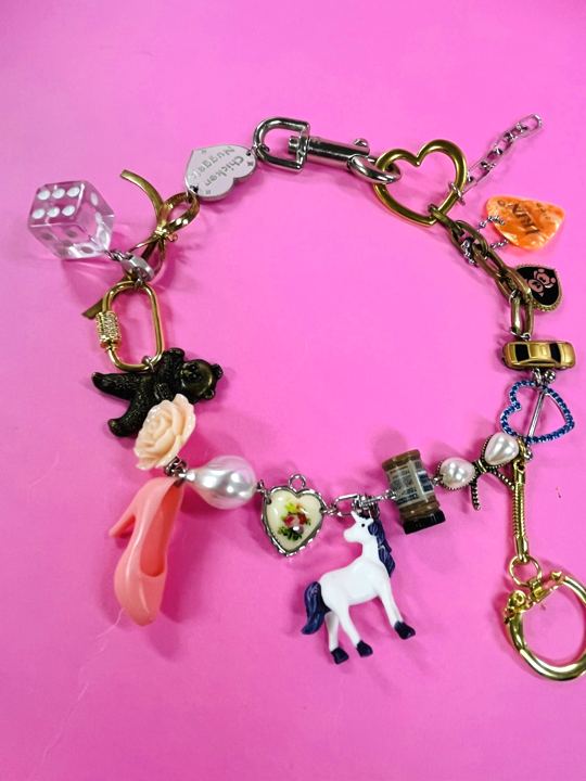 おとぎ話に登場するようなおもちゃにユーモア溢れるスパイス&ビジューを散りばめたネックレスです