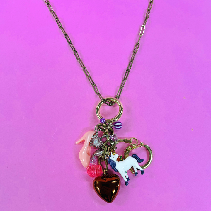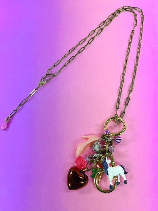 おとぎ話に登場するようなおもちゃにユーモア溢れるスパイス&ビジューを散りばめたネックレスです