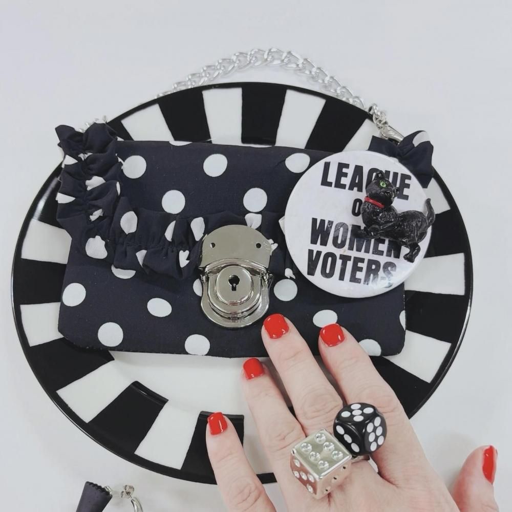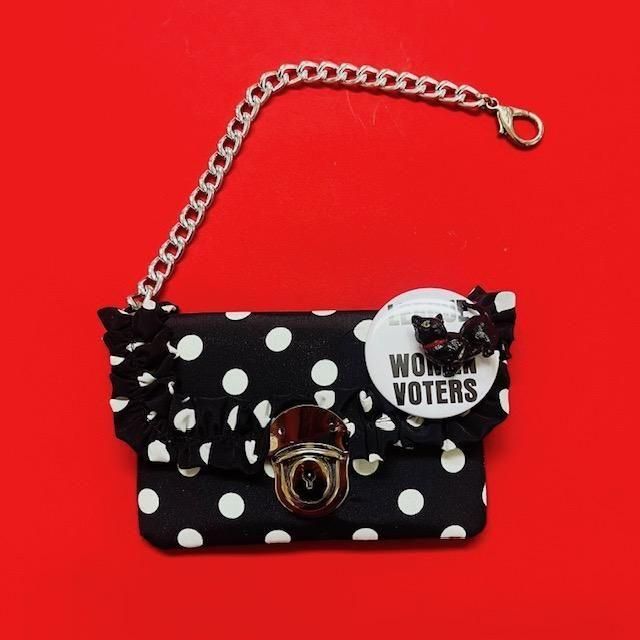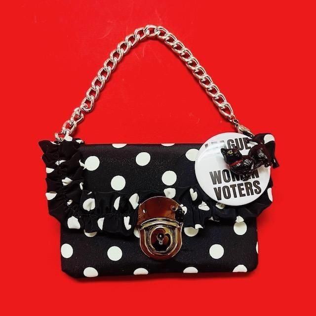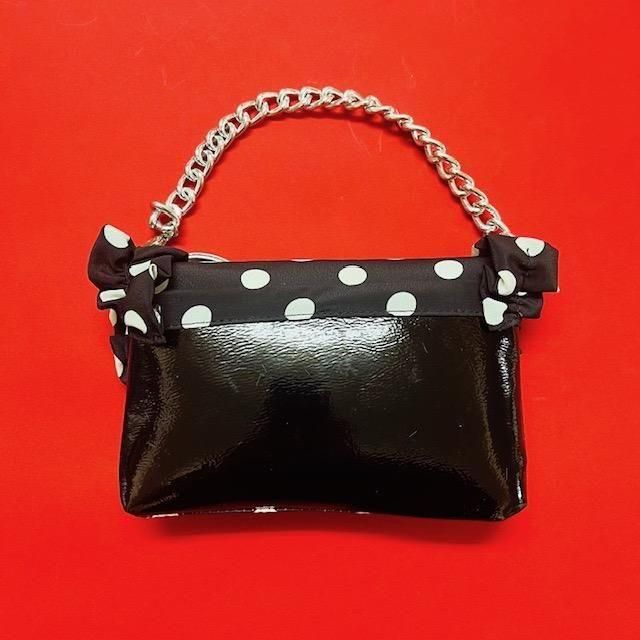 BLACK&WHITEのドット柄にボリュームあるフリルを効かせたミニバック
