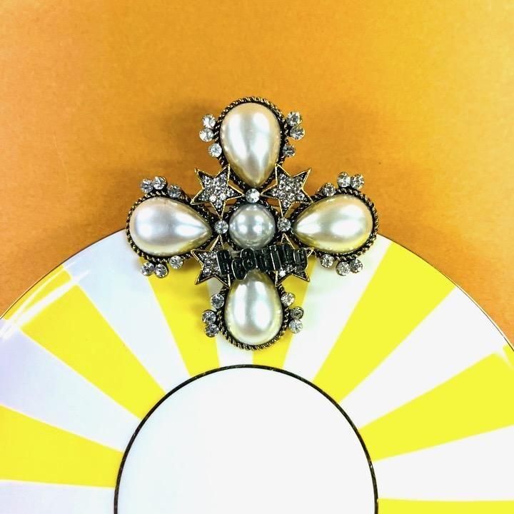 シックなアンティックゴールドカラーとパールが印象的に輝くパールブローチ